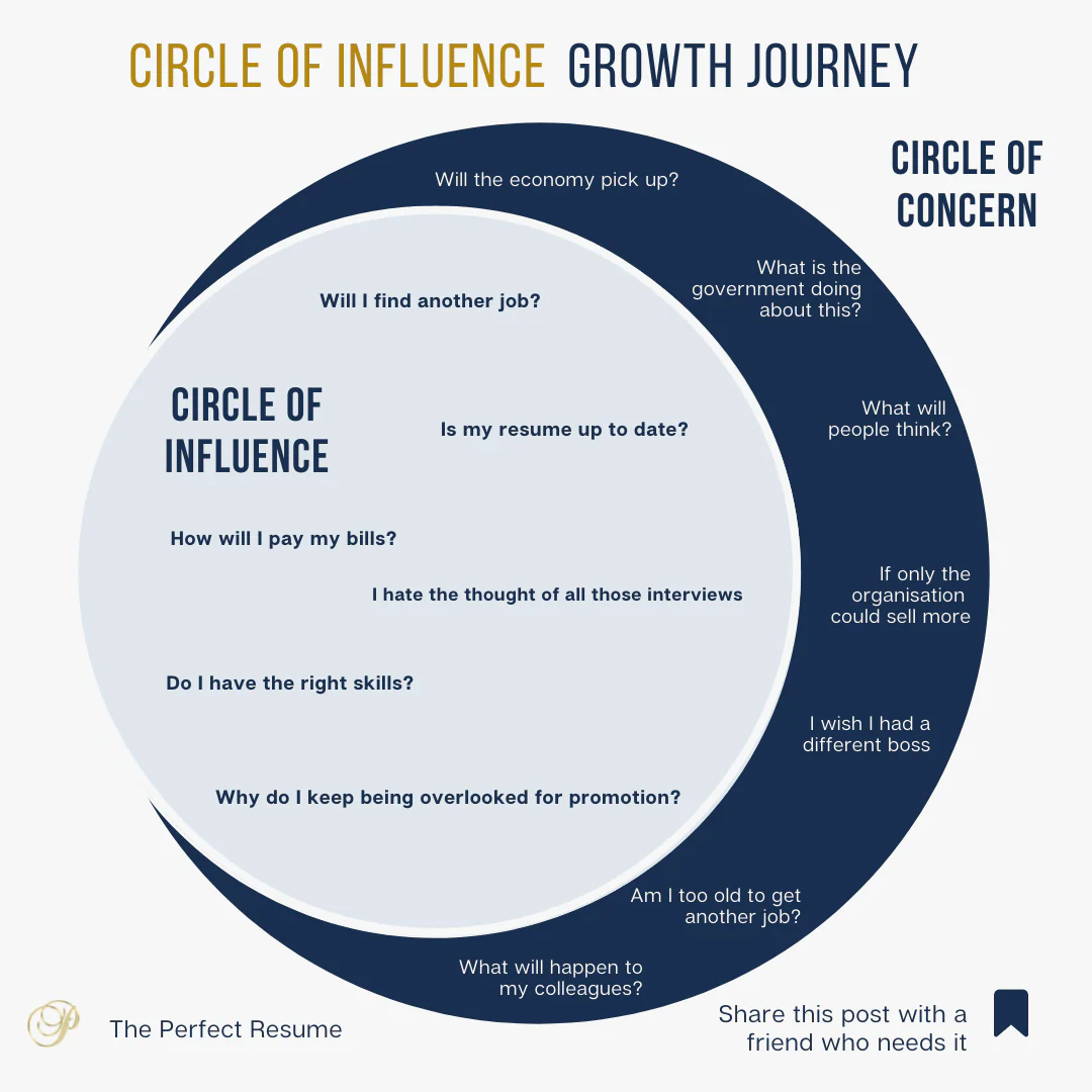 To overcome these worries when you are looking for a new job, you need to start using your time efficiently and worry about issues within your control. To do so, we have the following exercise that will help you sort out the most critical concern to focus on to maximise your time and personal influence.
